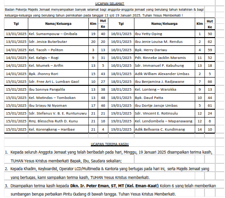 Menguatkan iman melalui ibadah dan kebersamaan setiap minggu.
